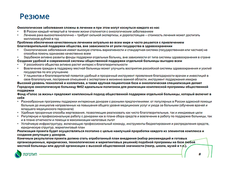 Не так давно я работала над презентацией для одного благотворительного фонда. Слайды в нем выглядели вот так: